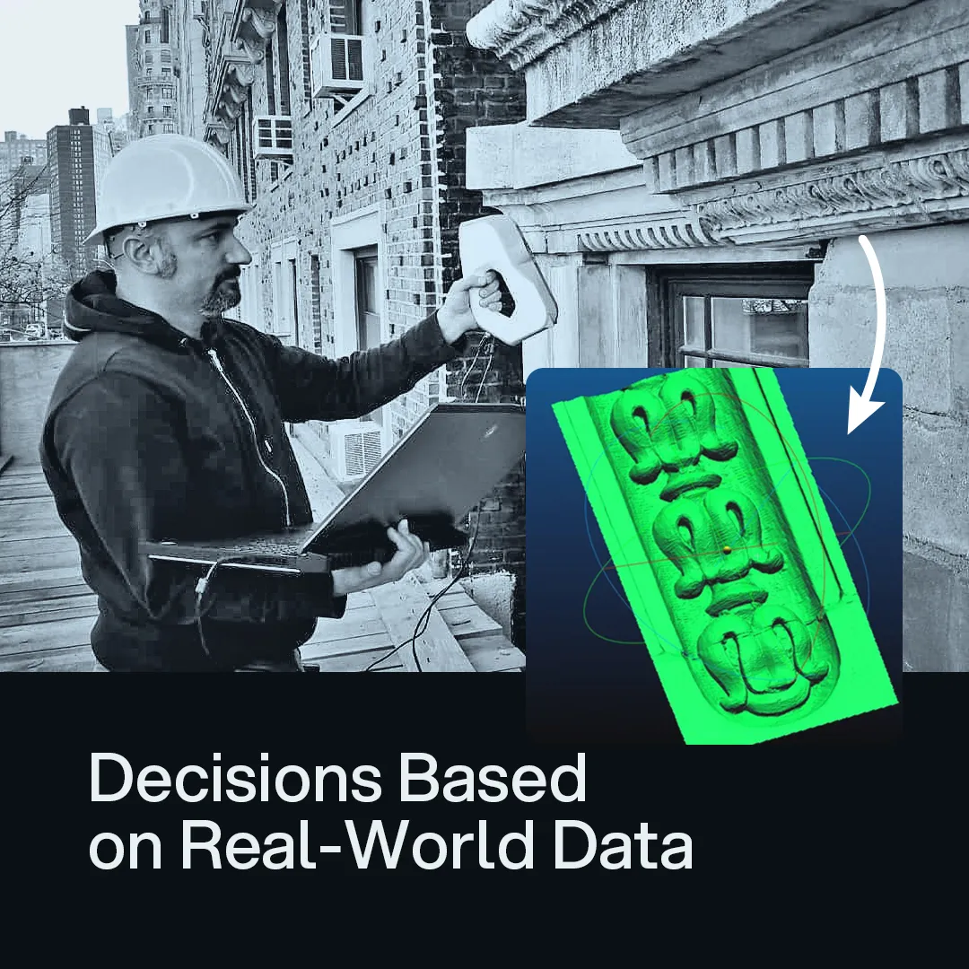 Using handheld or close-range scanners, teams can capture complex geometry such as stone carvings, columns, ornamental moldings, steel connections, or structural joints. The resulting high-resolution data preserves the exact shape, dimensions, and surface details of the object.